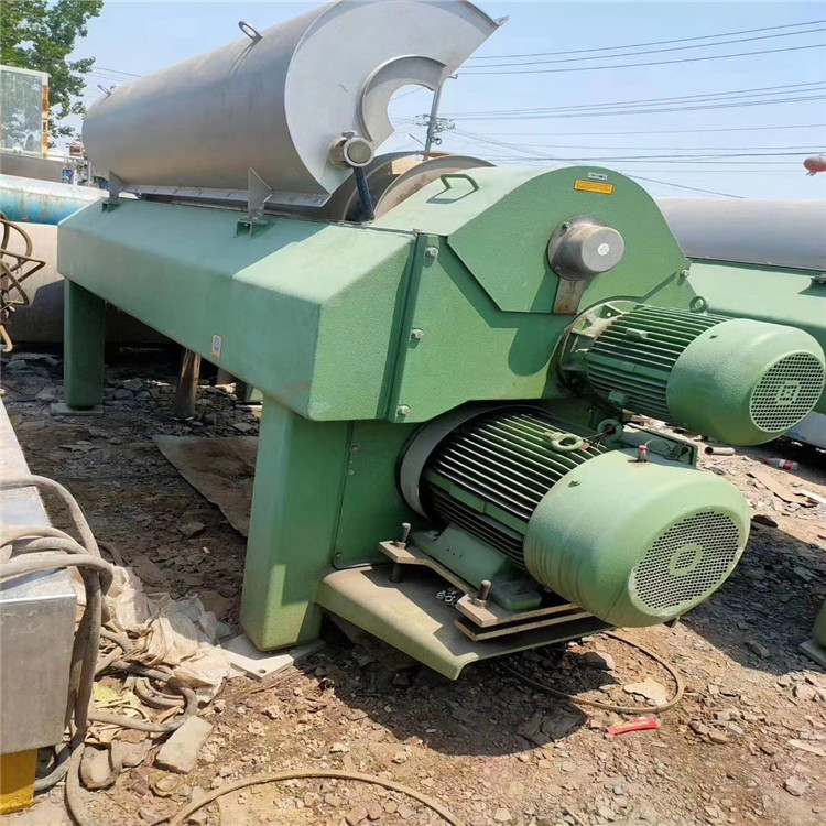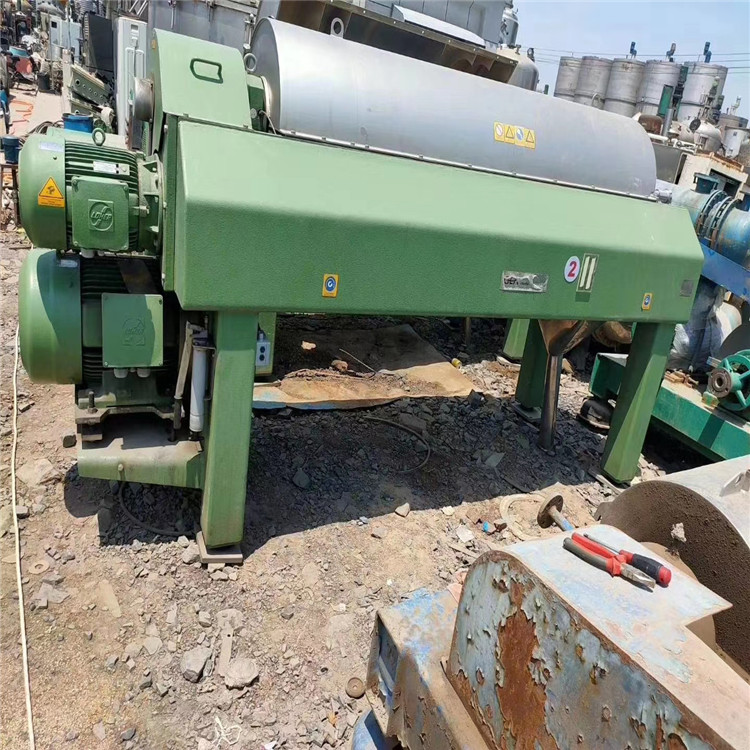 离心机的工作原理是:转鼓和螺杆以一定的差速沿相同方向高速转动。物料通过进料管连续地引入到输送螺杆的内筒中,然后在加快后进入滚筒。在离心力场的作用下,在转鼓壁上形成较重的固相物沉积沉积物层。输送螺杆不停将沉积的固相物推入转鼓的锥形端,并将其从机器中排出。较轻的液相形成一个内部液环,该内液环连续不断地从转鼓大端的溢流口溢出转鼓,并通过排出口排出机器外。兼具构造连贯,连续运转,运行安定,适应性强,生产能力大,维护便捷等特性。适用于分离浓度大于0.005mm的固相物粒度的悬浮液。范围2-40%。普遍用以化工,轻工,制药,食品,环保等行业。