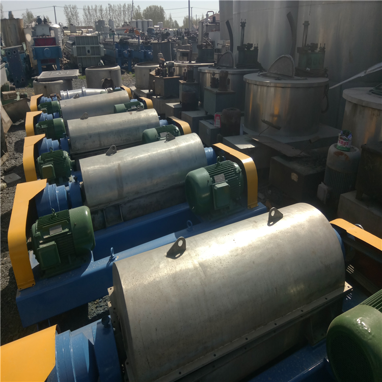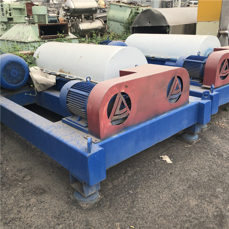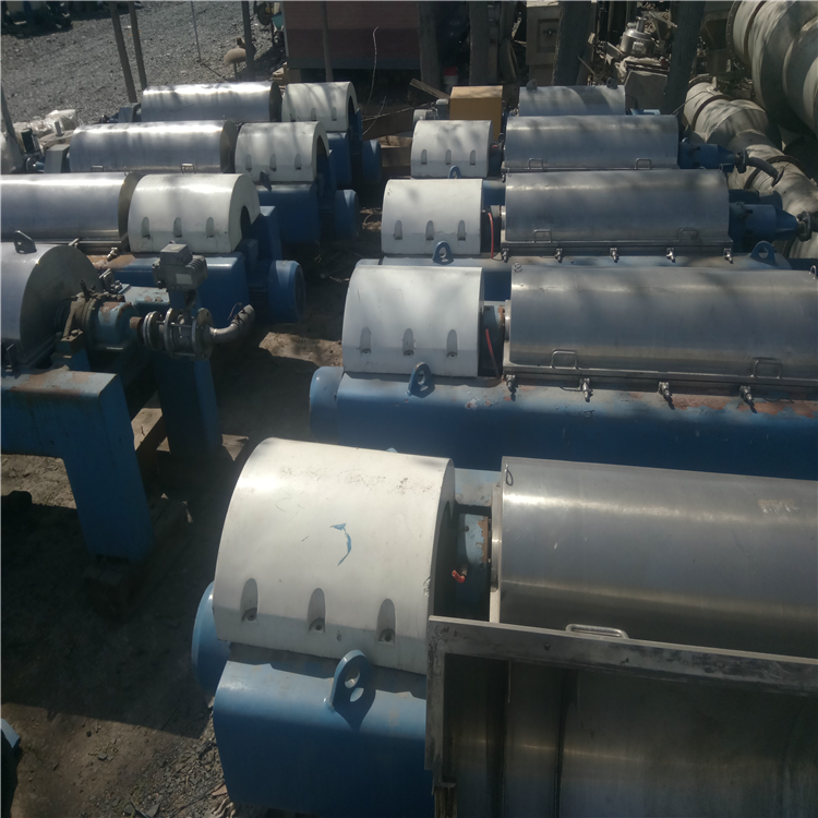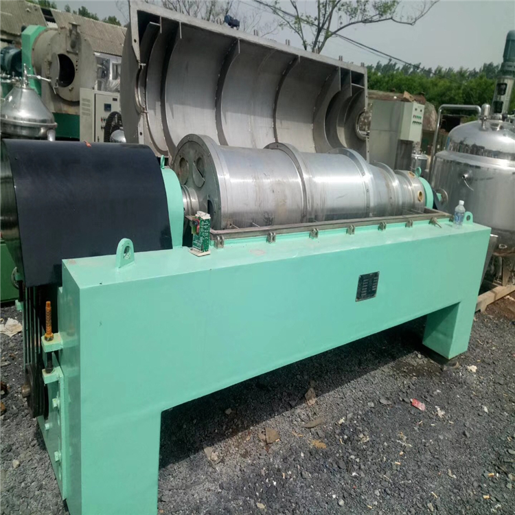 产品详情:卧式螺旋离心机是一种螺旋卸料沉降离心机,主要由高速滚筒,空心轴螺旋输送器和与滚筒相同的转速,比滚筒稍低的转速以及差速器构成。待分离的悬浮液由空心轴送入转鼓,在高速旋转产生的离心力的功用下立刻扔入转鼓腔中。高速转鼓产生强劲的离心力并粘在@在滚筒的内壁上比液相致密的nz@形成固体层(由于该环,称做固体环层);水分少,离心力小,所以只能在固体环层内形成液体层,叫作液体环层。由于螺杆和滚筒的转速不同,所以两个现有的板有着相对的运动(即转速差)。螺杆和转鼓的相对运动用以将固体环层中的污泥缓慢推到转鼓的锥形端,经过干燥区后,从分布在转鼓圆周上的出口连续排出。鼓;液环层中的液体通过重力从堰不断地排出到滚筒的外部,以形成分离的液体。